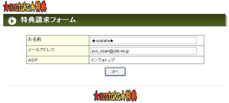 ★特典申請フォームで、お名前(ハンドルネームで大丈夫です。)と、メールアドレスを入力して下さい。