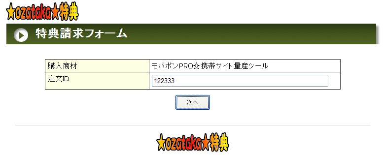 次に、注文IDをご入力下さい。購入商材名は自動で入っています。