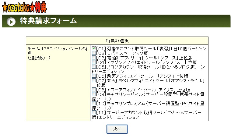 また、インフォトップでも、特典選択後、戻って選び直しをされた場合、確認後になります。