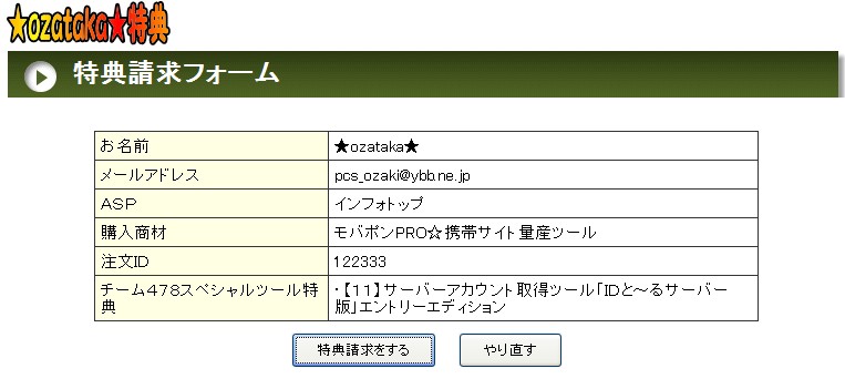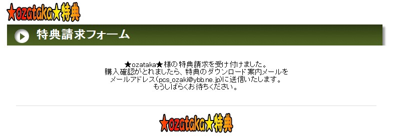 ★そのメールに記載された特典入手URLとID・パスワードで、特典を入手して下さい。